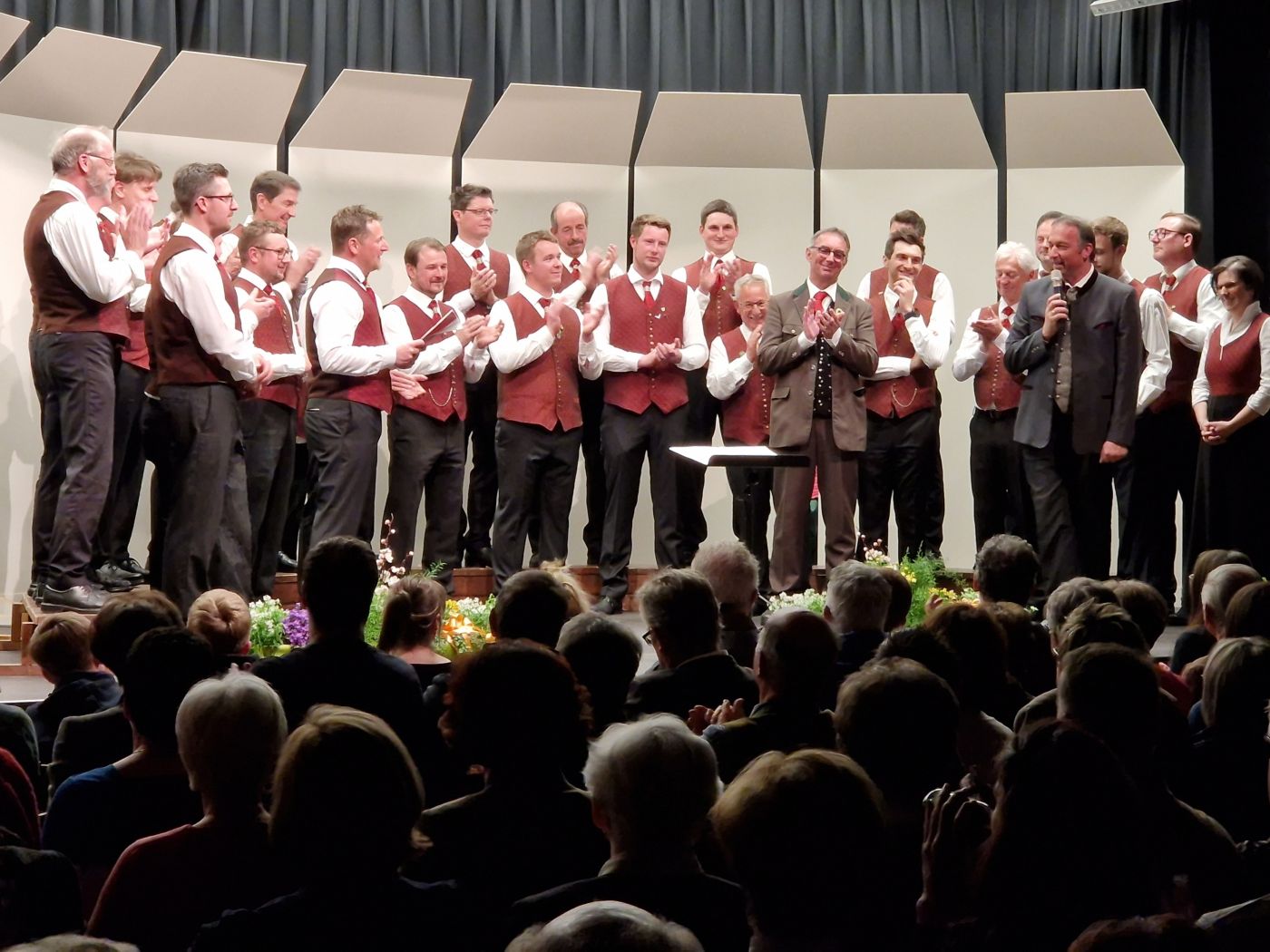 Es war ein mehr als kongenialer Abend, auch Dank der instrumental-vocalen Gäste mit Theresa Hartlieb, Anna Nußbaumer sowie Nici und Christian Oberlojer – aus Irschen. Heimlicher Höhepunkt war bestimmt, dass viele neugierig auf die neue Chorleiterin waren: Petra Pirker. Abstammend aus Obervellach, wohnhaft am Oberberg, wagte sie sich in die Fußstapfen des legendären Karl Ebenberger. Mit sichtlichem Erfolg! Herzlichen Glückwunsch. Mit ihr freute sich bestimmt auch ihr (Er-)Finder, Otto Weiß, der an diesem Abend gleich mehrfach strahlen konnte: Schließlich wurde er vom Österreichischen Chorverband mit der 50-jährigen Verdienstmedaille gekürt. Weiters ehrten Bürgermeister Wolfgang Krenn und Hermann Laikauf vom Sängergau Oberland die Herren Bernd Brunner und Heimo Krismayer für 10 Jahre, Gerhard Wuggenig, Florian Gruber und Andreas Mößlacher für 20 Jahre, letzter steht dem MGV ja als Obmann vor und zeigte für die Organisation, nicht nur dieses gelungenen Liederabends, gemeinsam mit der Sprecherin Jutta Jester, verantwortlich.