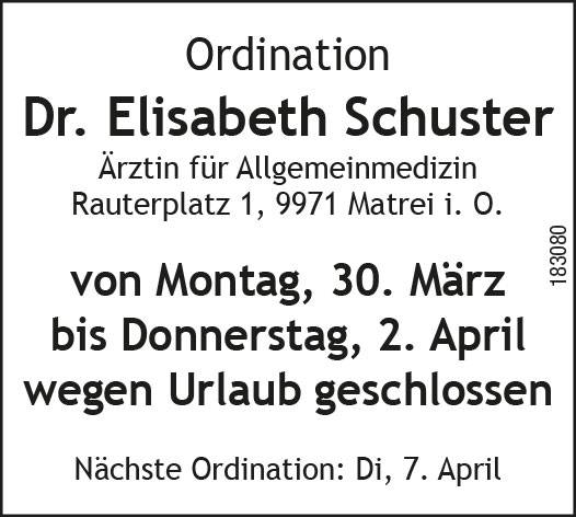 • Datumsangabe Bereitschaft: Samstag, 4., und Sonntag, 5. April: , Text Bereitschaft: Dr. Dieter Bogusch, Lienzer Straße 10, Matrei i. O., Praxistelefon: 04875-5151. Ordination: Samstag von 9 bis 12 und 16 bis 17 Uhr, Sonntag von 10 bis 12 und 16 bis 17 Uhr.