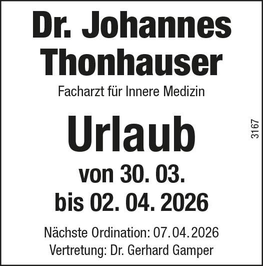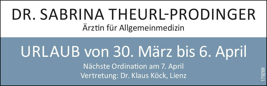 • Datumsangabe Bereitschaft: Montag, 6. April, von 9 bis 11 Uhr: , Text Bereitschaft: Dr. Florian Klaunzer, Lienz, Amlacher Straße 2/1, Tel. 04852-62466.