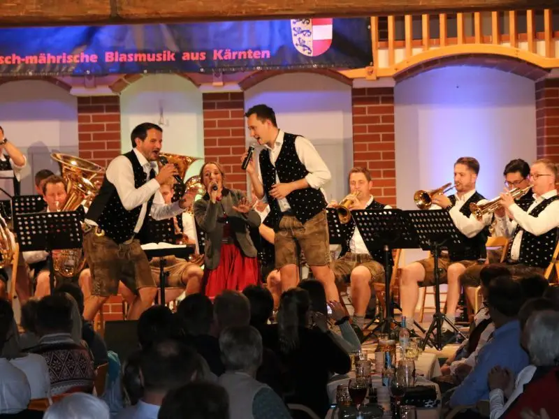 Mit dem Titel „Goldene Klänge“ spielten die Glocknermusikanten in einer großen Egerländer Besetzung mit ehemaligen Musikern der der Gruppe in der Alten Schmelz in Großkirchheim auf.