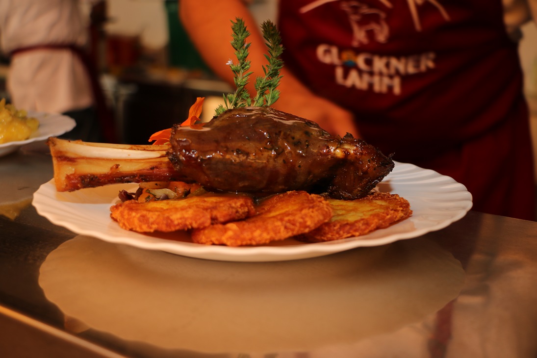Das Glocknerlammfest wurde mit dem traditionellen Bieranstich eröffnet. V. l.: Josef Steiner (Raiba), LA Bgm. Michael Maier (Radenthein), Nationalpark-Landesrätin Sara Schaar, „Hausherr“ und Bgm. Martin Lackner, LH-Stv. Martin Gruber, TVB-Chef und Hoteli