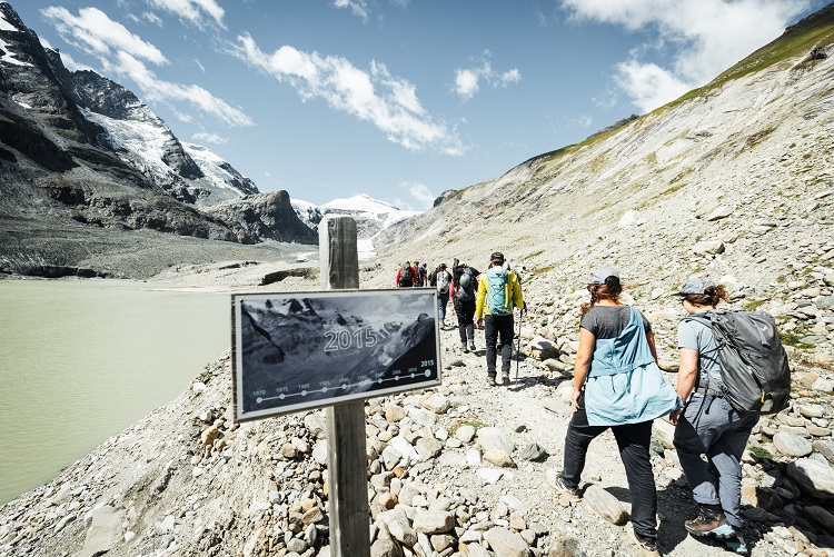 Bereits im März kam der aktuelle Gletscherbericht des Alpenvereins heraus, der die Lage der Pasterze als „alarmierend“ bezeichnet. Noch nie in der Geschichte des Gletschermessdienstes, die bis 1891 zurückreicht, wurde ein größerer Gletscherschwund gemessen, als im Vorjahr. Die vom Alpenverein beobachteten Gletscher sind im Mittel um 28,7 Meter kürzer geworden. Der größte Gletscherrückgang wurde beim Schlatenkees in Tirol gemessen: 89,5 Meter. Unser Gletscher „vor der Haustüre“ gleich auf Platz 2 der „Verlierer“ büste im Vorjahr im Bereich der Gletscherzunge 87,4 Meter seiner Länge ein und verlor ein Volumen von 14,7 Mio Kubikmeter Eis. Verbildlicht: ein Würfel mit einer Kantenlänge von 245 Metern, also ungefähr die Höhe des Donauturms in Wien. Der Grund für die rapide Gletscherschmelze: Unterdurchschnittliche Schneemengen und eine erneut sehr warme und lange Schmelzperiode, die schon im Mai ansetzt und bis September hineindauert. Aufgrund der klimatischen Veränderungen werden Österreichs Alpen bis 2075 eisfrei sein, eine schon „optimistische“ Einschätzung von den beiden Leitern des ÖAV-Gletschermessdienstes Gerhard Lieb und Andras Kellerer-Pirklbauer im März dieses Jahres.