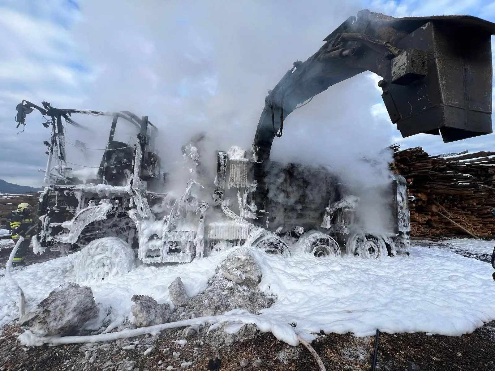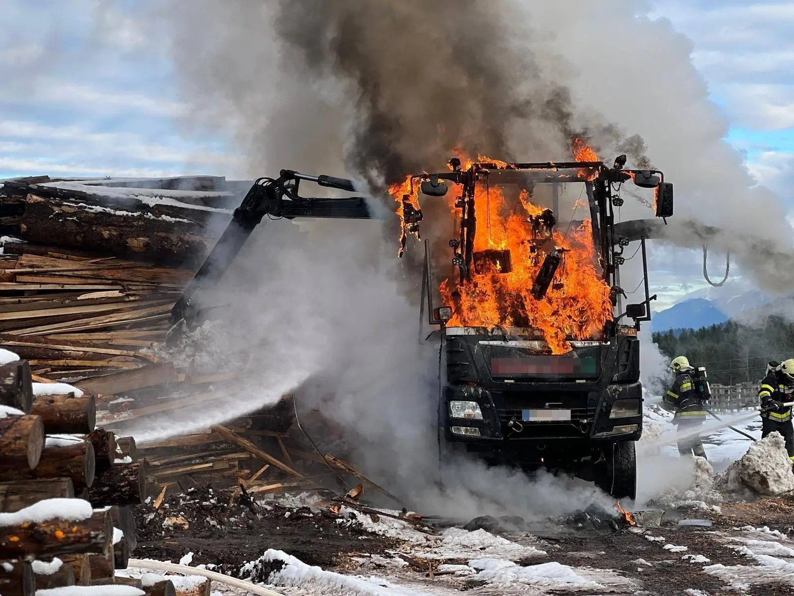 In Würmlach in der Marktgemeinde Kötschach-Mauthen, Bezirk Hermagor, geriet am Nachmittag des 2. Dezember 2025 ein Holzhäcksler-LKW auf dem Gelände eines Sägewerkes in Vollbrand.
