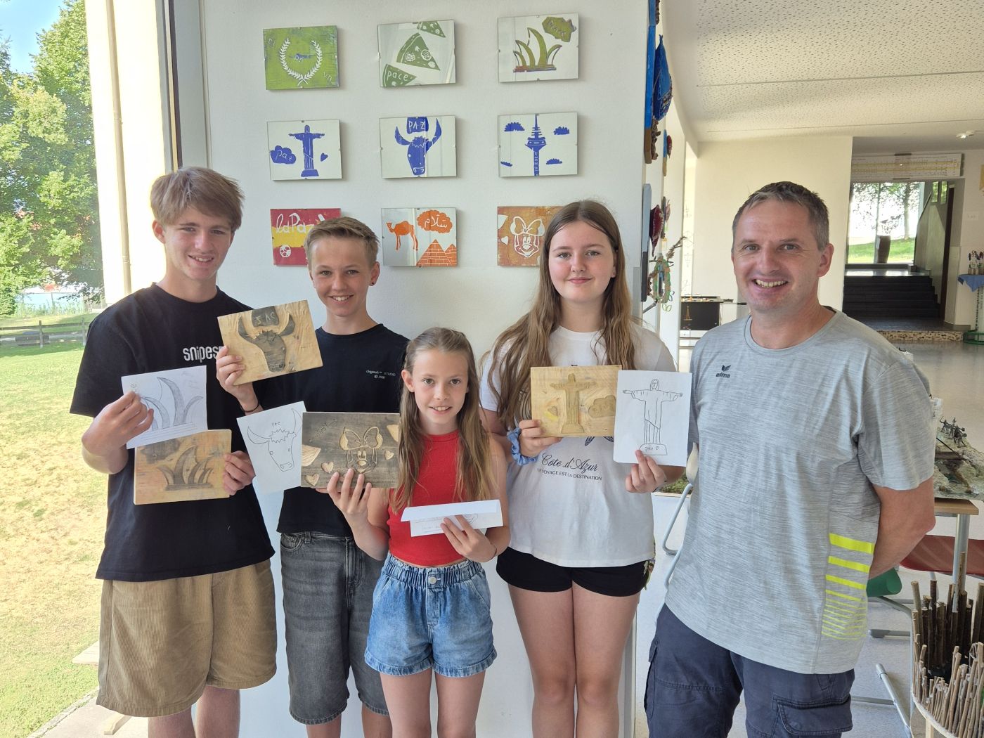 Pirker fertigte mit den Schülern Holzschnitte, dabei wurden Bilder und Texte in Holzplatten geschnitzt und anschließend mit verschiedenen Farben auf Papier gedruckt. Die Kunstwerke waren auch in der MS Greifenburg ausgestellt.