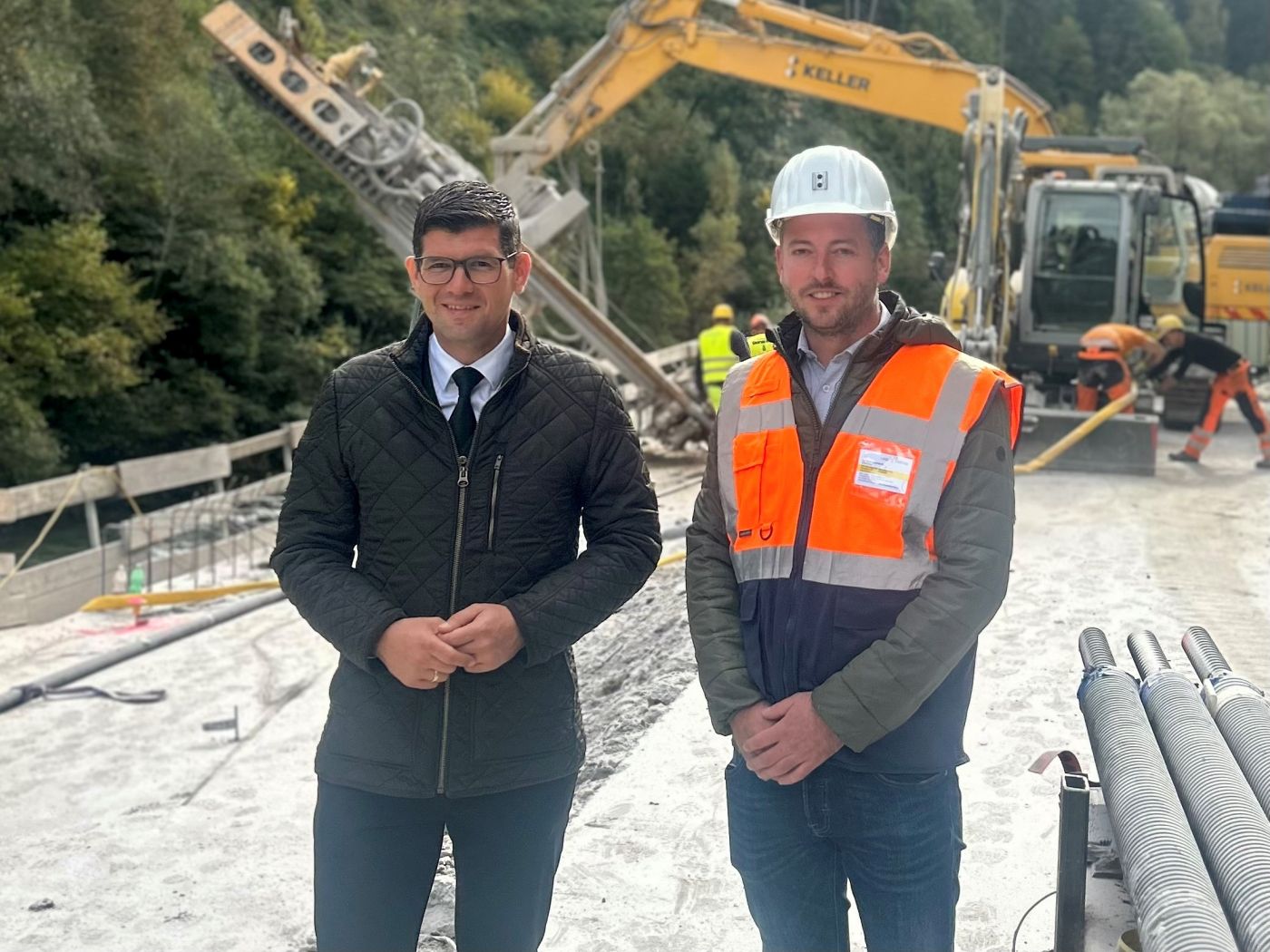 Wie LHStv. Martin Gruber berichtet, wurde in der Zeit der Totalsperre intensiv an der Errichtung weiterer Kragplatten gearbeitet, auf denen der Radverkehr zukünftig sicher durch die Lieserschlucht geführt wird. „Zusätzlich zu den bereits seit Baubeginn errichteten 500 Metern Kragplatten konnten seit 1. Oktober weitere 200 Meter an Kragplatten im Bereich vom Marienheim bis zur Ertlwand hergestellt werden. Der Bau dieses Leuchtturmprojekts liegt damit im Zeitplan und ist von der Ortseinfahrt Spittal bis zur Ertlwand baulich bereits weitgehend fertiggestellt“, berichtet Straßenbaureferent LHStv. Martin Gruber über die Fortschritte, von denen er sich kürzlich bei einem Lokalaugenschein selbst überzeugte.