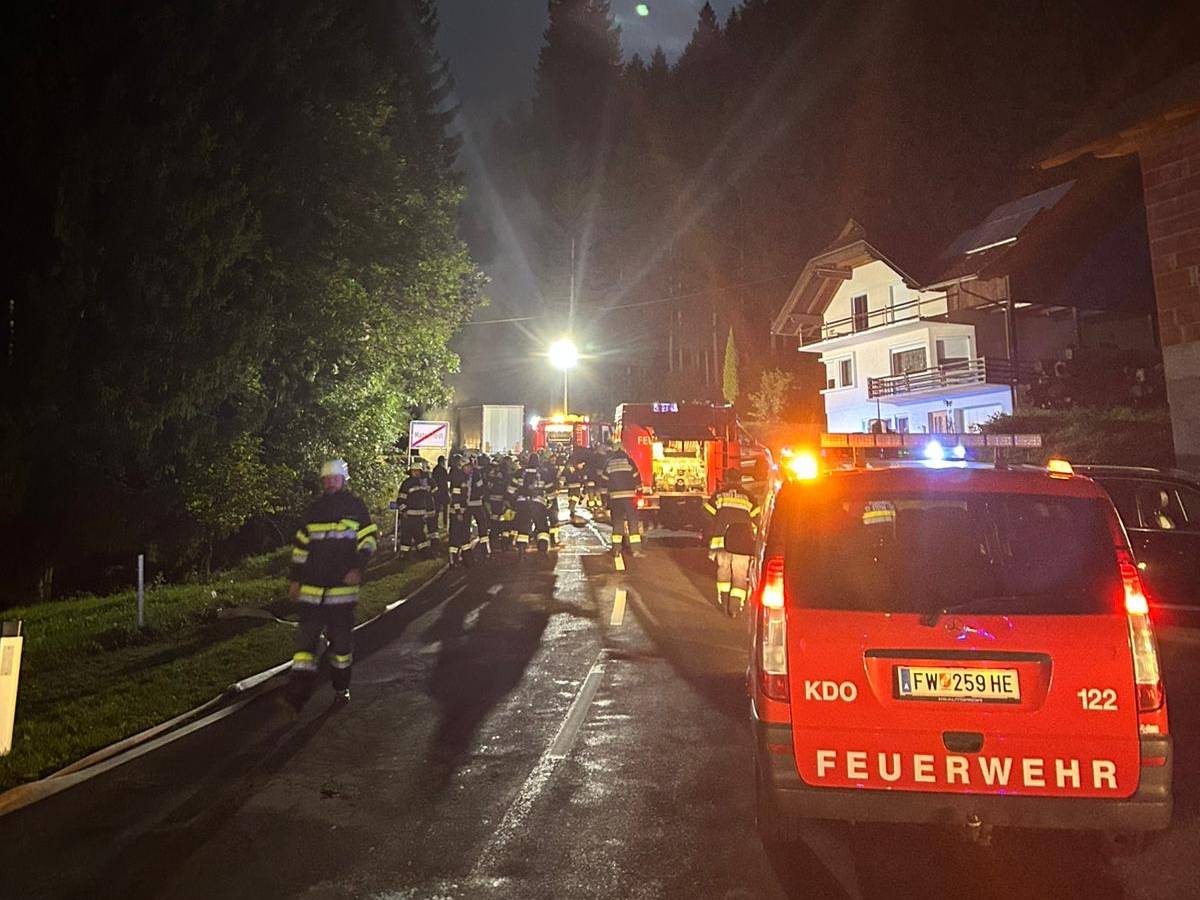 Die bereits alarmierte und kurze Zeit später eingetroffenen FF Matschiedl, Tratten, St. Stefan, Kerschdorf Wertschach, St. Paul und Vorderberg, insgesamt 73 Einsatzkräfte, konnten den Brand rasch löschen. Beim Eintreffen der ersten Einsatzkräfte stand das Zugfahrzeug und ein Teil des Sattelaufliegers bereits in Vollbrand. Durch das rasche Eingreifen mehrerer Trupps unter schwerem Atemschutz konnte die Brandausbreitung auf den restlichen Sattelauflieger und den angrenzenden Wald verhindert werden. Der Lenker des LKW blieb unverletzt. Das Führerhaus brannte vollständig aus. Nach rund 45 Minuten konnte „Brand aus“ gegeben werden. Die Kreuzner Landesstraße (L33) war während der Löscharbeiten für den gesamten Verkehr gesperrt.