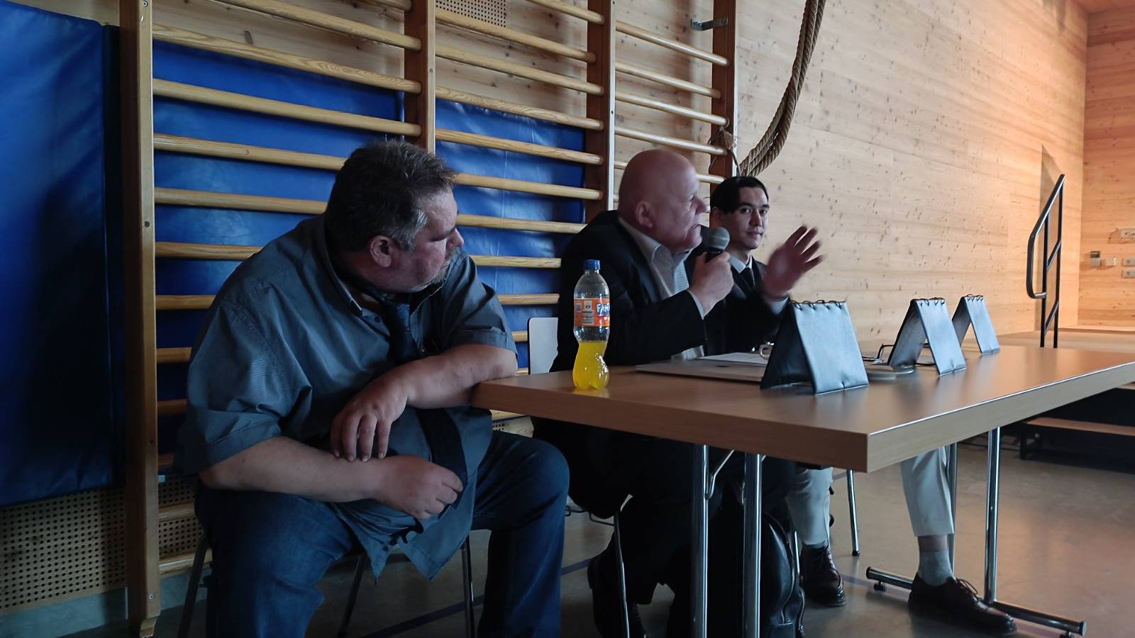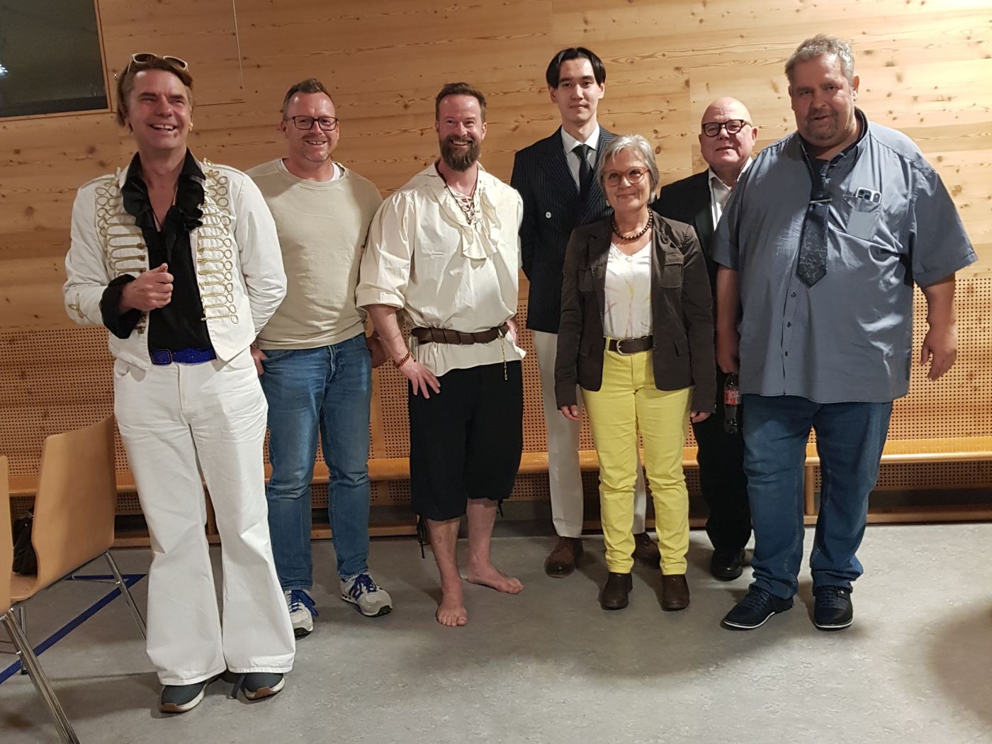 V. l.: Als Jury beim Kurzfilm- Festival in Stall im Mölltal fungierten Martin Schinagl (er übernahm auch die Moderation), Christian Rieder, Harald König, Mansur Sarsembayev (aus Kasachstan), Beate Himmelstoß und Igor Pucker. Helmut Michael Kemmer ist Festival-Gründer und Organisator.