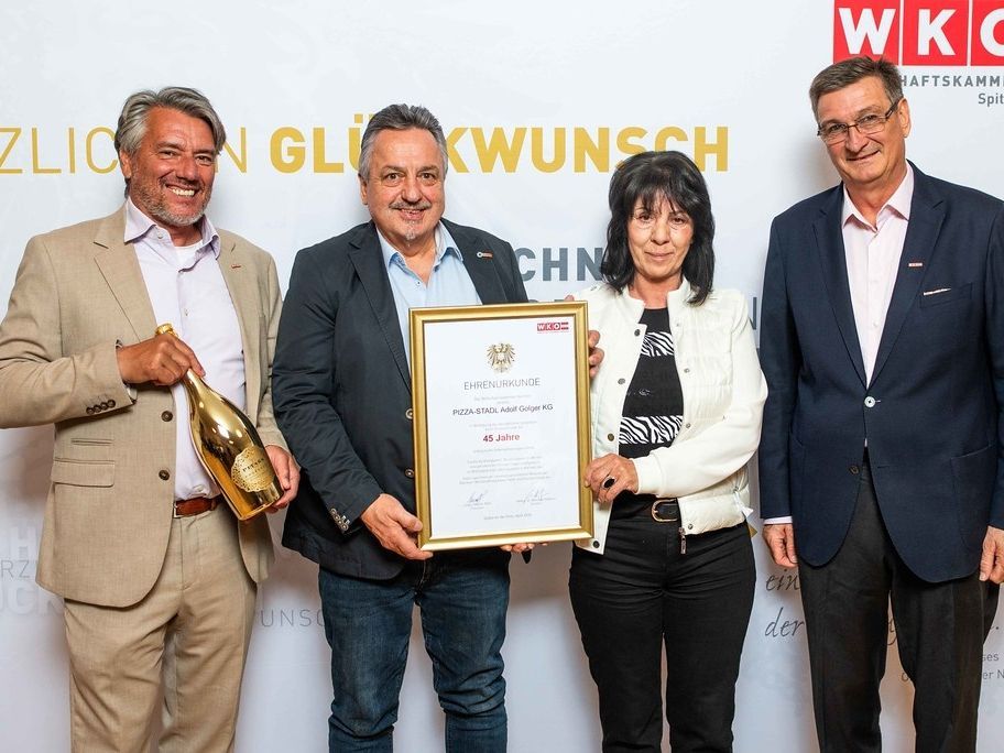 V. l.: Künstler Robert Buchacher, Bettina Von Thun, MGV-Obmann Christoph Bodner sowie Senner und Gastgeber Christoph Buchacher.