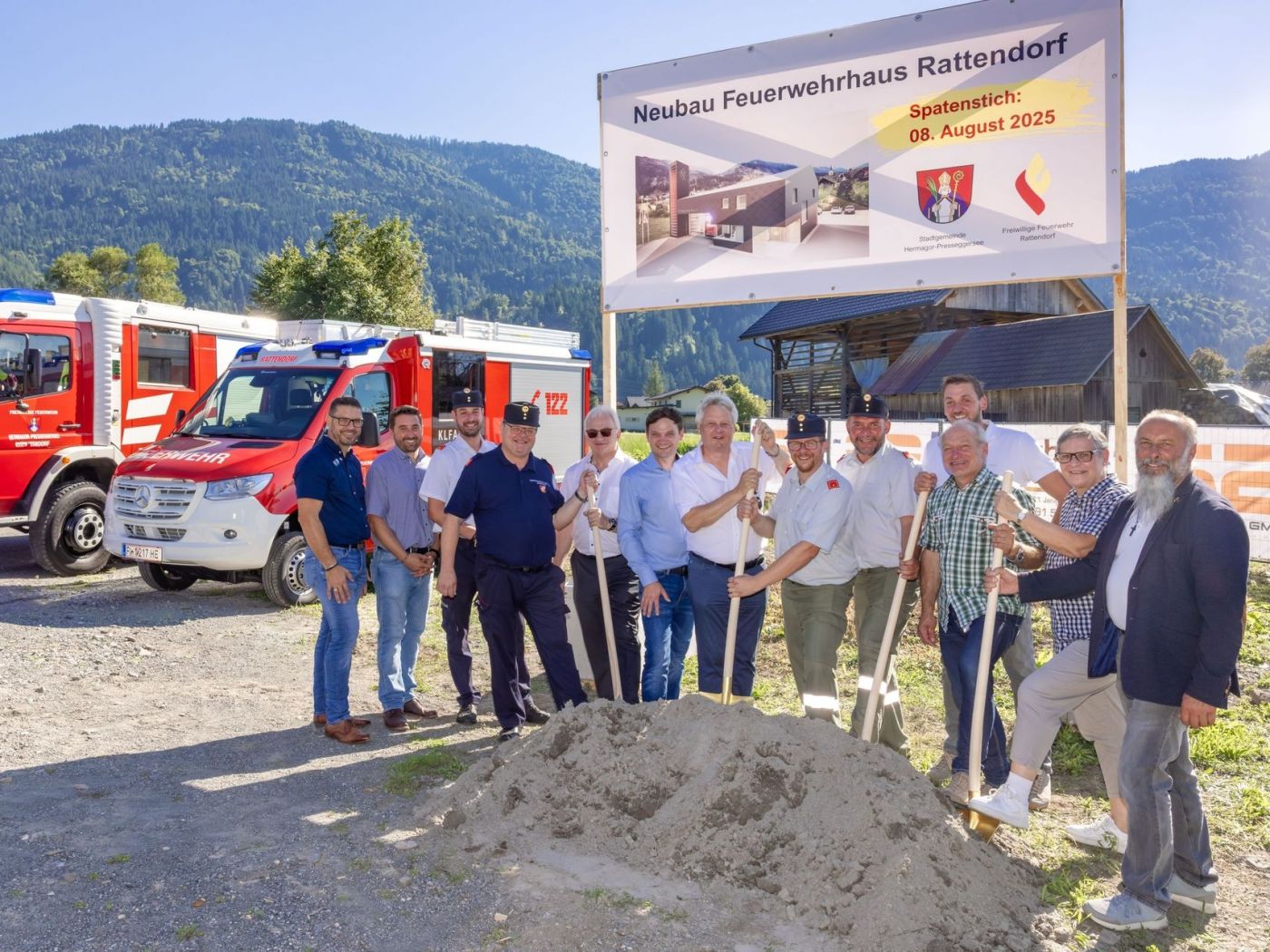 Ende des Vorjahres wurde die Finanzierung im Gemeinderat beschlossen, nun erfolgte schließlich der Spatenstich für das neue Feuerwehrhaus in Rattendorf (Gemeinde Hermagor-Pressegger See).