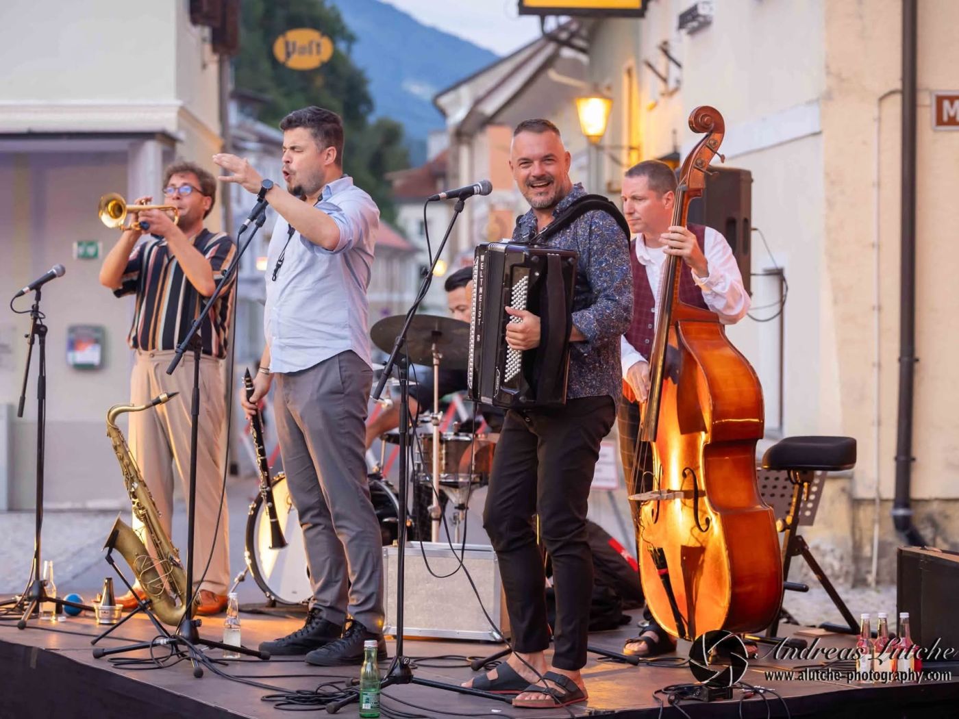 Wenn „Eddie Luis und seine Jazzbanditen“ aufspielen, verwandelt sich der Marktplatz in Oberdrauburg regelrecht in eine Open Air-Bühne. So geschehen bei ihrem „Via Iulia Augusta“-Konzertauftritt in der Drautaler Marktgemeinde letzte Woche.