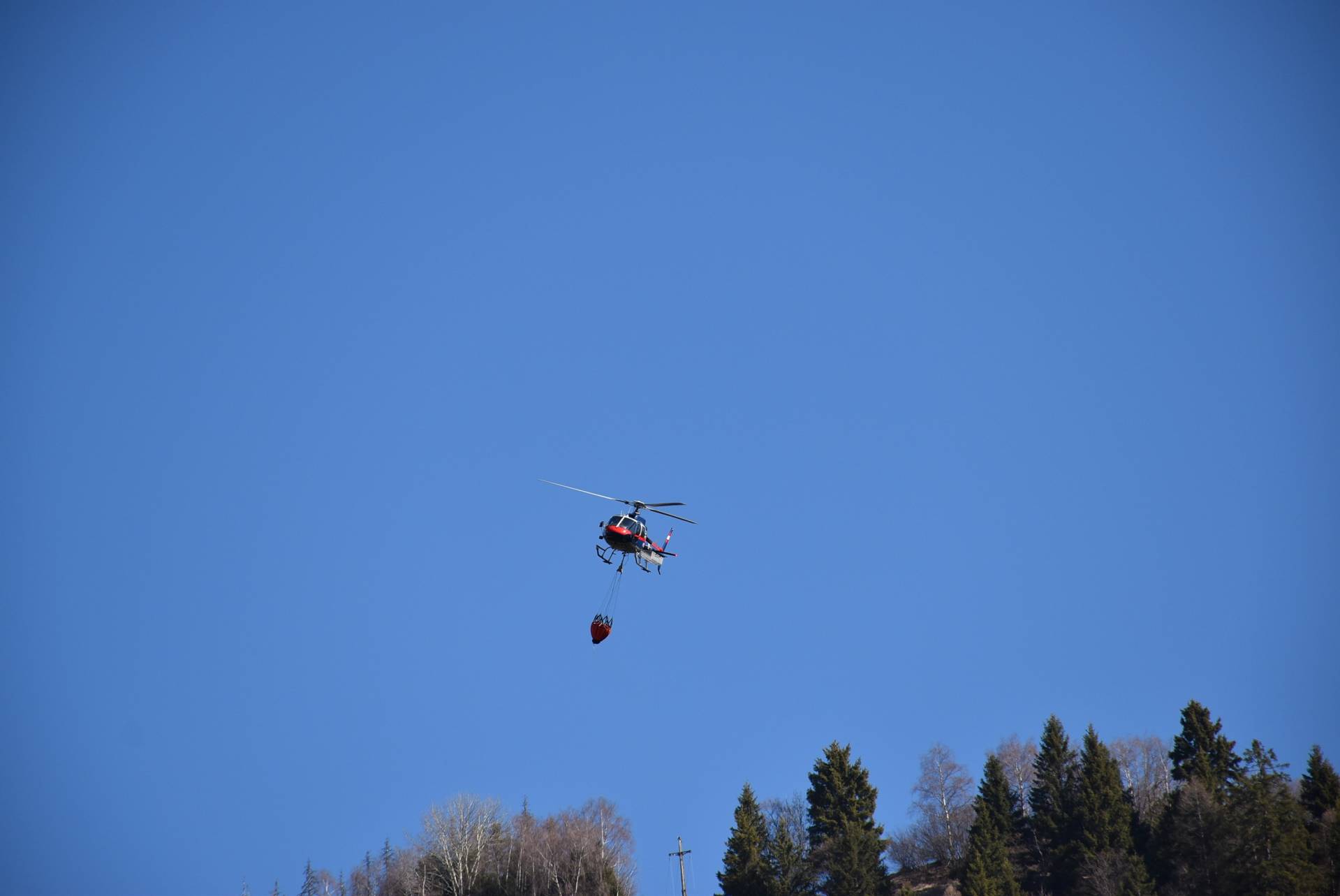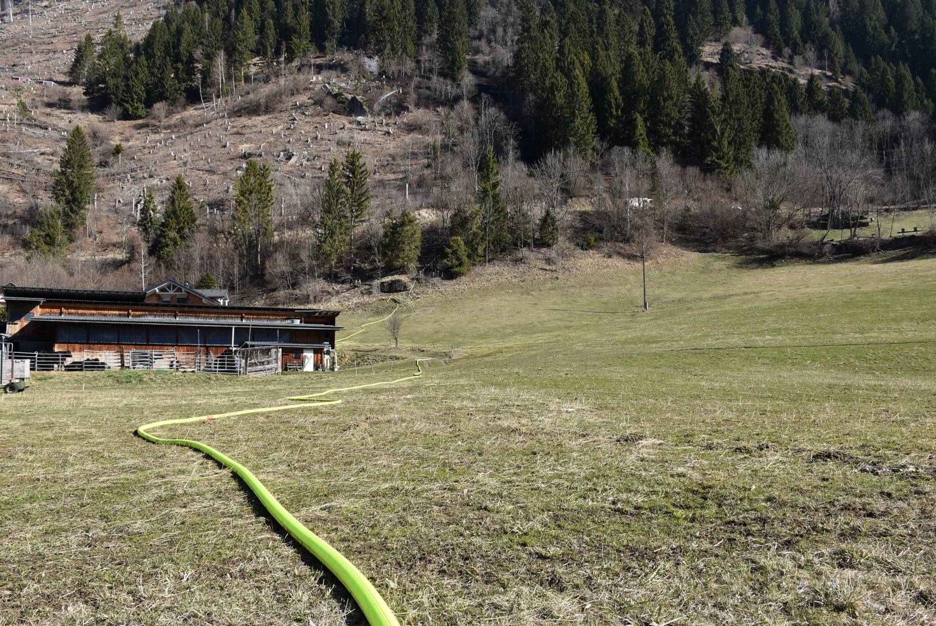 Durch eine Sturmböe wurde um 14:30 Uhr eine Stromleitung, die über einen Berghang zu einer Siedlung oberhalb der Ortschaft Namlach führt, umgerissen. Dadurch wurde die umliegende Waldfläche in Brand gesetzt. Bedingt durch den starken Wind hat sich das Feuer schnell ausgebreitet.
