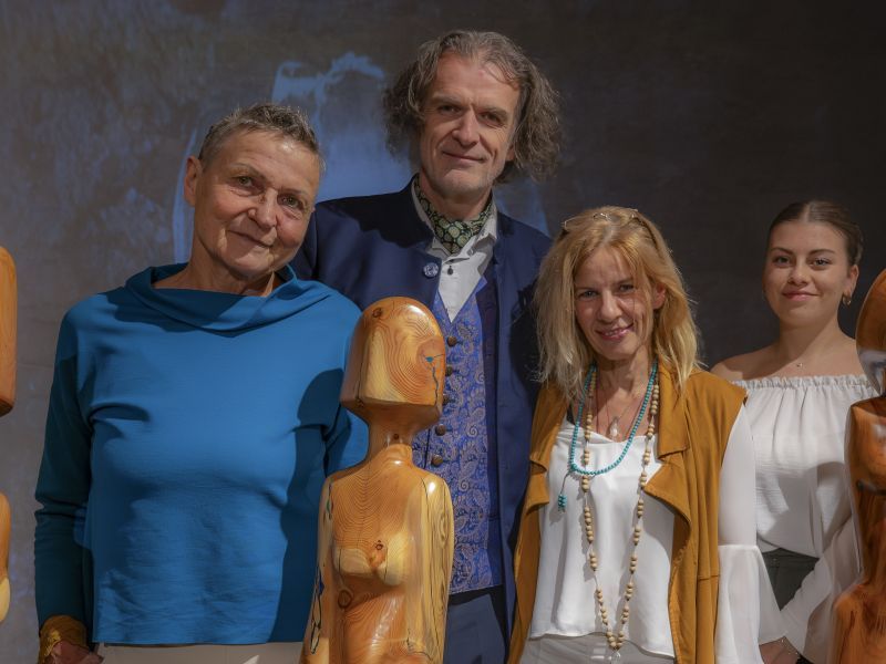 Weiße Federn, Harfenklänge und berührende Gedichte erfüllten das Salamanca-Gewölbe zur Eröffnung der neuen Ausstellung „SO HAM“ in der Galerie im Schloss Porcia.