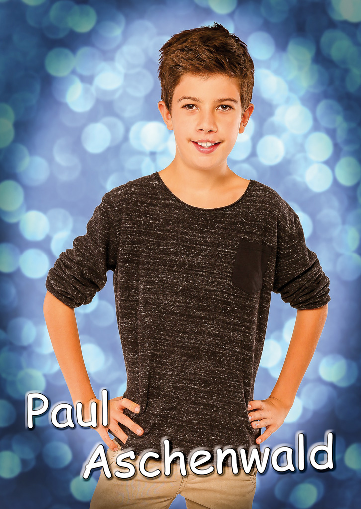 Der 12-jährige Paul Aschenwald sang sich mit „Gespenster gibt es sicher nicht“ im vergangenen Jahr auf den tollen zweiten Platz beim Kiddy Contest. Es gab rund 2.000 Bewerbungen. Der Kiddy Contest ist eine Castingshow von Puls 4 für Kinder von 8 bis 13 Jahren. Paul lebt bei seinen Eltern Johanna und Rudolf in Spittal, hat eine Schwester namens Anna.