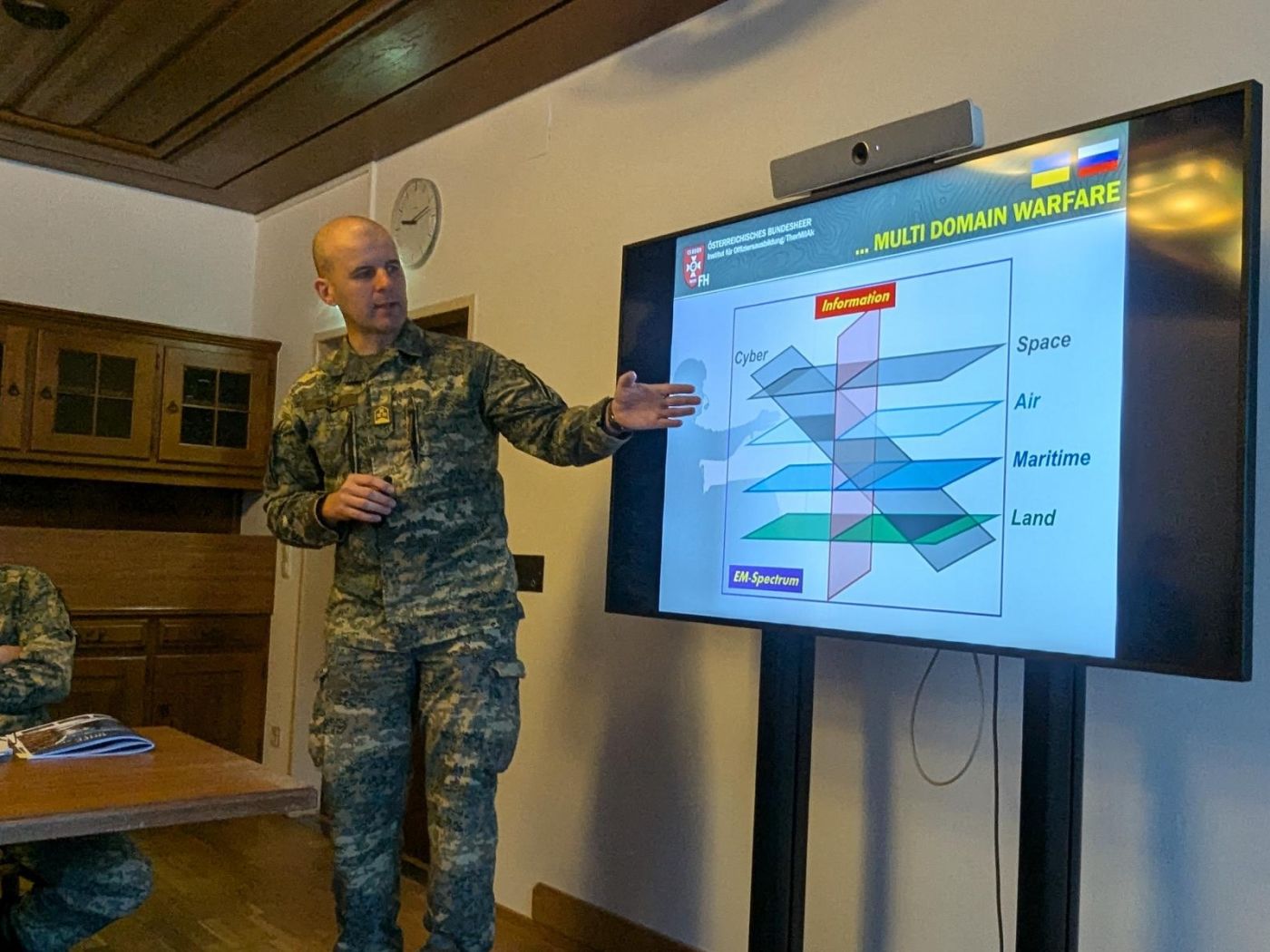 Die Neutralität Österreichs werde durch die globale Erosion der Ordnung zunehmend herausgefordert, so Reisner weiter. Der Vortrag zielte darauf ab, auf zukünftige Eskalationen vorzubereiten und betonte die Notwendigkeit, das Bundesheer weiter zu modernisieren. Fortschritte seien bereits sichtbar, weitere Maßnahmen benötigten Zeit. Im Anschluss des Vortrags sprach Boris Knorr mit dem Oberst des Generalstabdienstes über weitere Inhalte.
