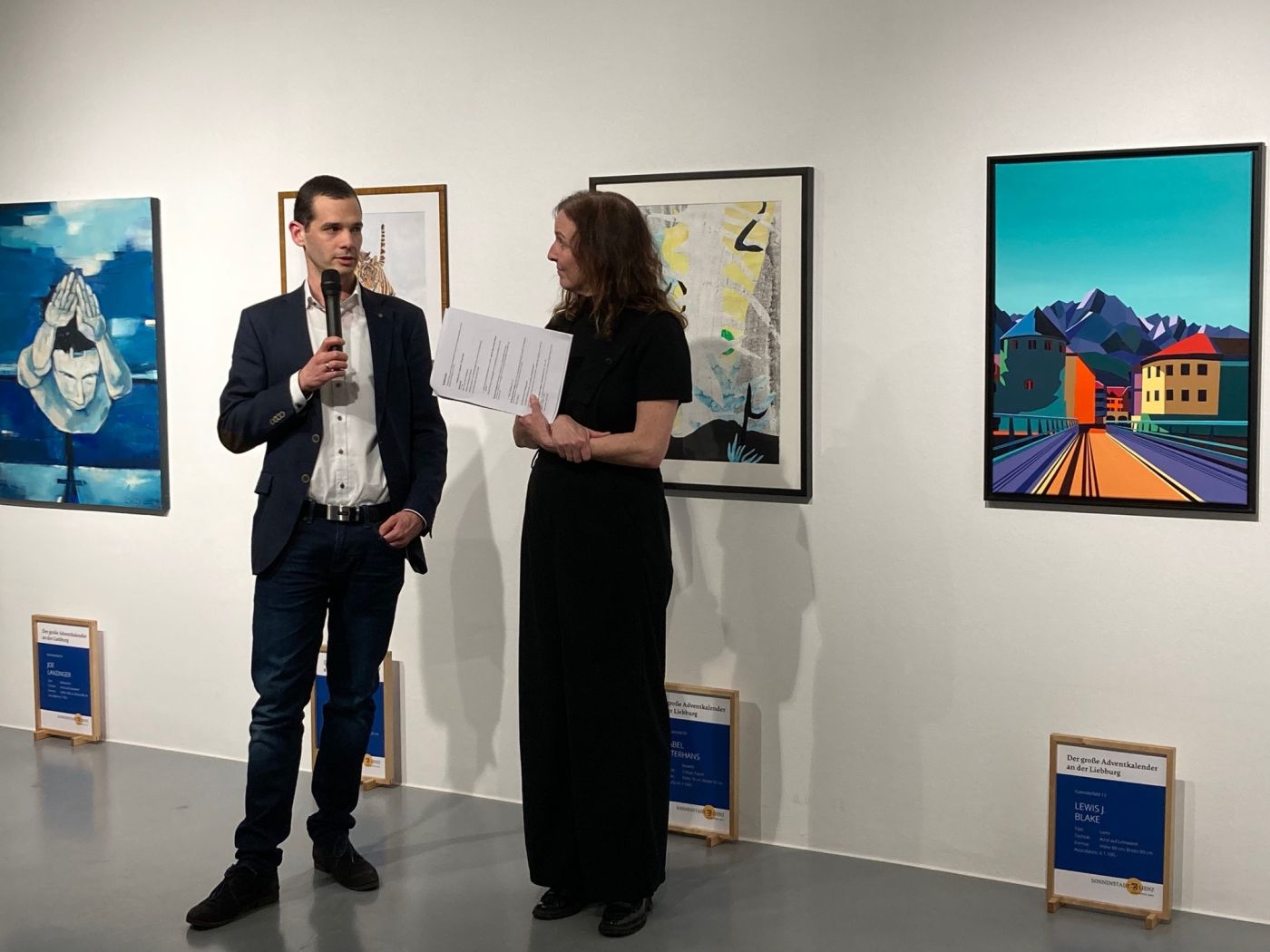 Seit Dezember waren die 24 Originalwerke des Lienzer Kunstadventkalenders im Atelier der Raiffeisen Landesbankstelle Lienz zu sehen. Round Table hat den Adventkalender an der Liebburg im vergangenen Advent zum 27. Mal organisiert. Jetzt geht die Sozial-Aktion ins Finale. Bei der Finissage vor einer Woche gab es noch einmal Gelegenheit, Näheres zu den Bildern zu erfahren,  bevor diese am kommenden Freitag im Ratssaal der Liebburg für den guten Zweck versteigert werden.