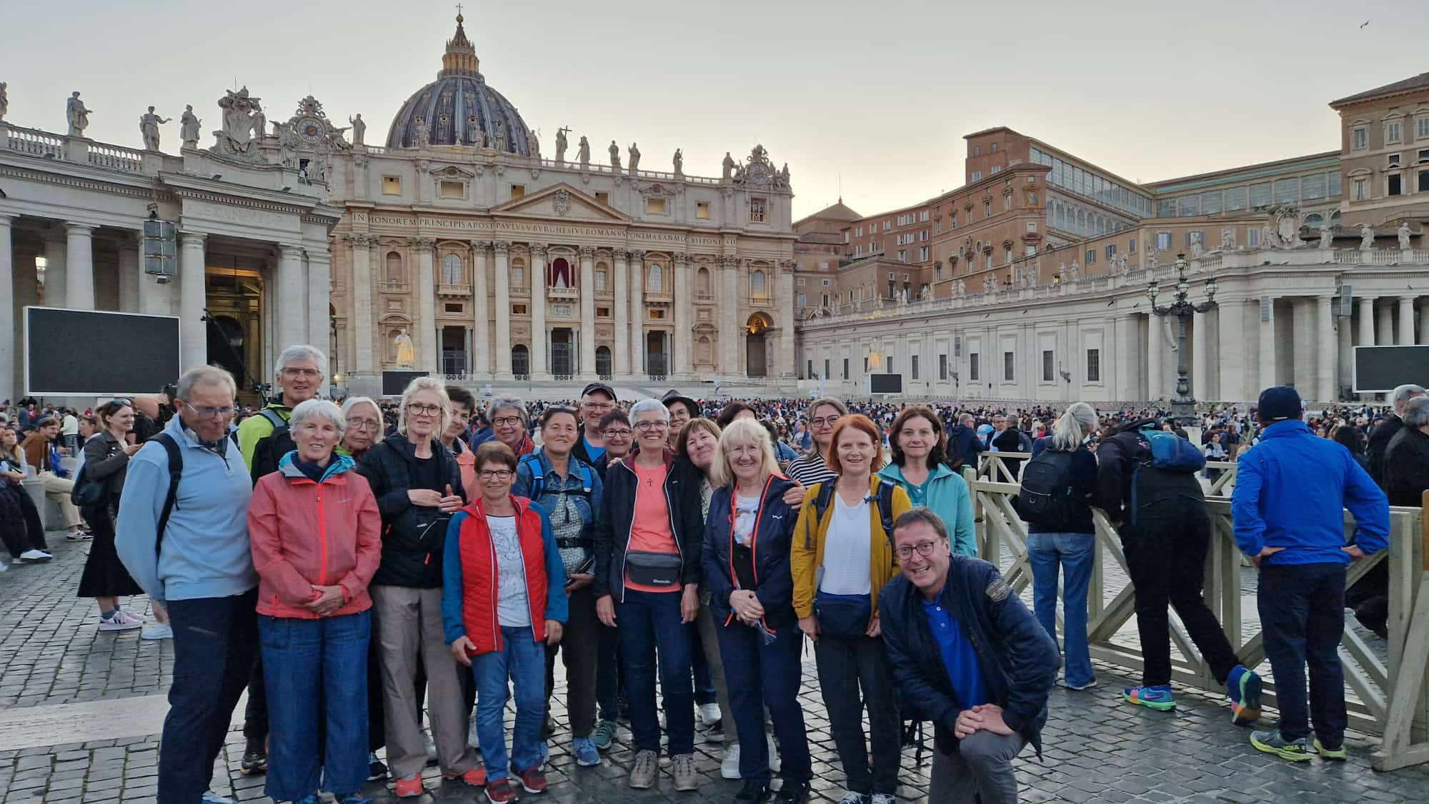 Eine Pilgergruppe aus Tirol mit dem Lienzer Dekan Franz Troyer konnten die Papstwahl am Petersplatz "live" miterleben. Foto: Troyer