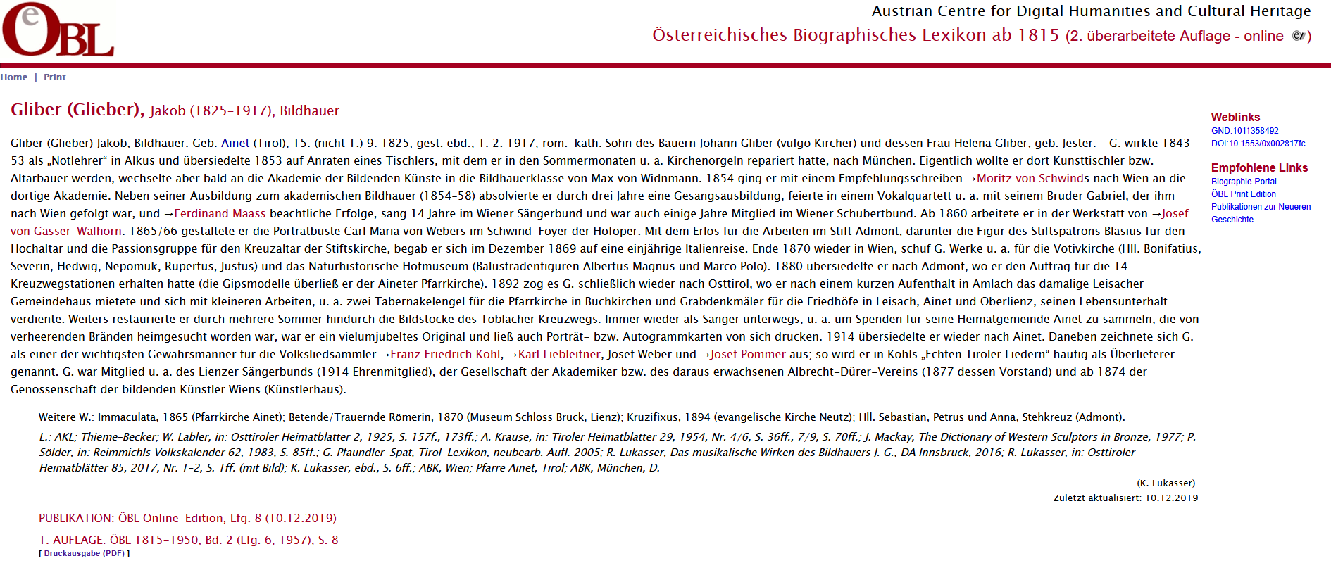 Jakob Gliber aus Ainet war ein bekannter Bildhauer und Nationalsänger. Er wurde am 15. September 1825 in Ainet geboren, und starb ebenfalls dort 1917. Was sich Jakob Gliber zu seinen Lebzeiten schon gewünscht hätte, wurde jetzt umgesetzt.