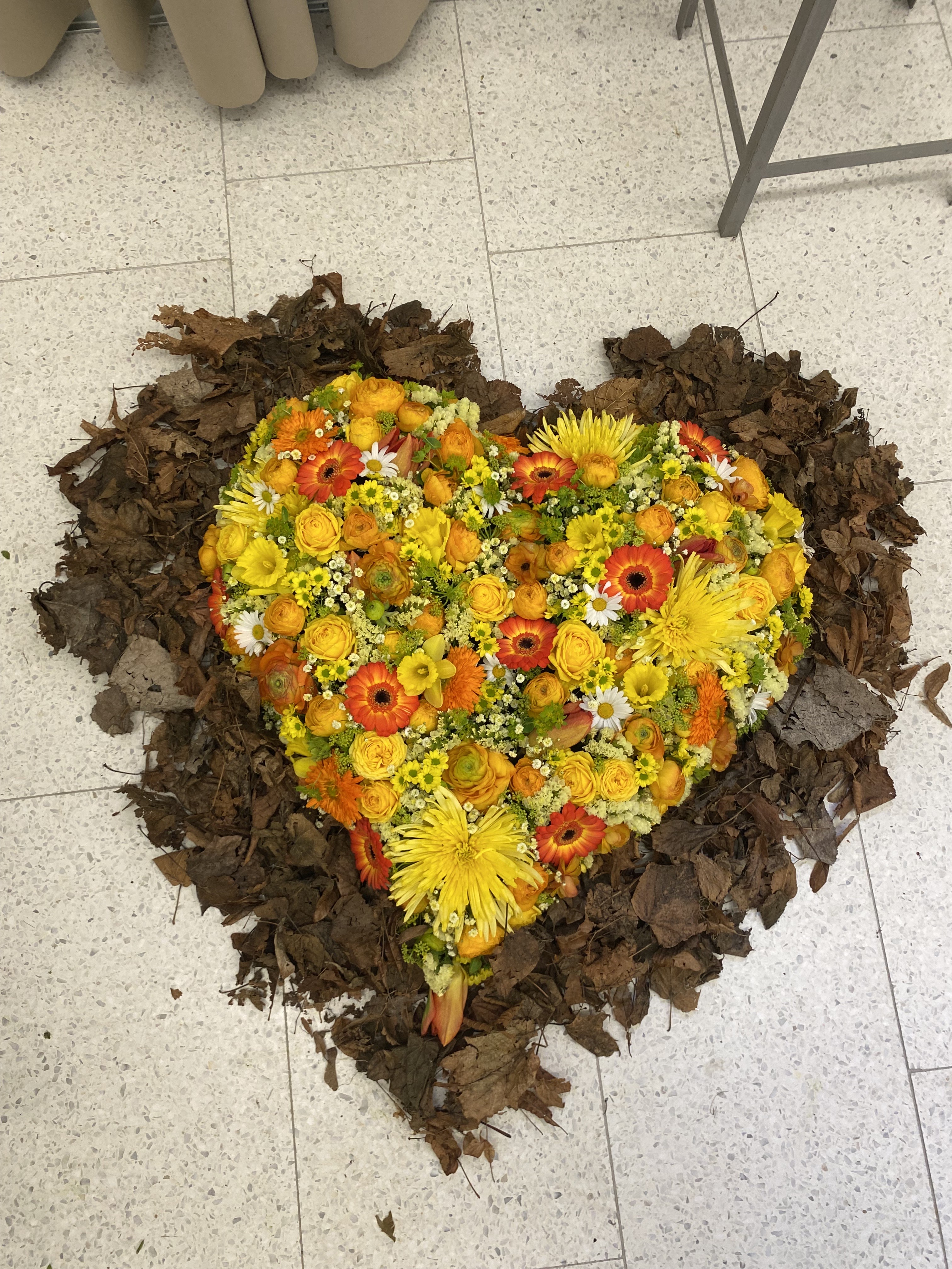 In meinem Werkstück verwende ich alte, verwelkte Blätter als Basis. Sie symbolisieren die Erfahrungen und Geschichten der Vergangenheit. Aus ihnen wachsen frische, lebendige Frühlingsblumen, die die neue Generation darstellen.