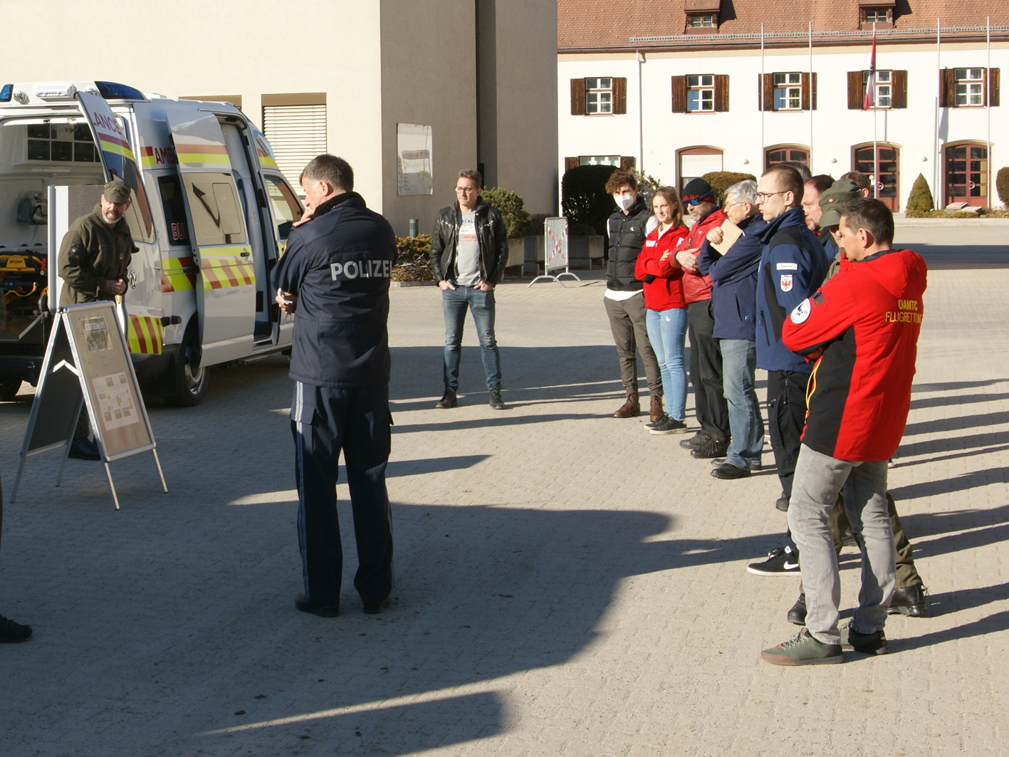 In der Haspingerkaserne wurden u.a. die Möglichkeiten für eine Zusammenarbeit mit dem Bundesheer vorgestellt. Die Vertreter der Einsatzorganisationen konnten sich ein Bild von den Transport-Möglichkeiten des Bundesheeres im Katastrophenfall machen. Das Jägerbataillon 24 kann eine lückenlose Transportkette auch in unwegsamen Gelände sowie eine Sanitätsversorgung bis zur Übergabe an zivile Rettungsorganisationen sicherstellen.