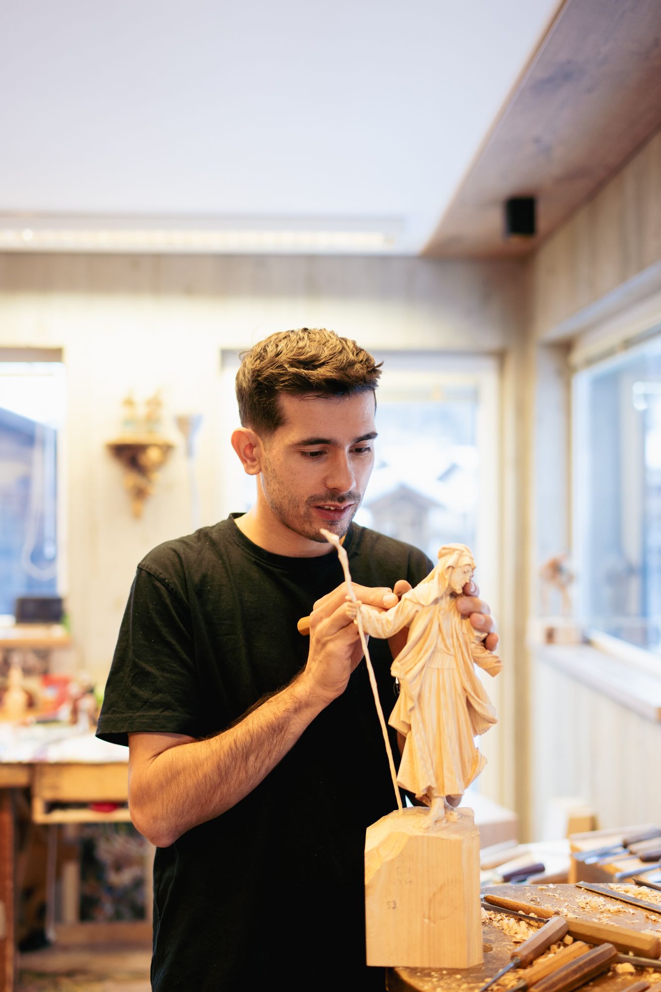 Bildhauer Manuel Egger-Budemair schnitze bereits im Alter von sieben Jahren Hergott-Figuren. Das Handwerk erlernte er in Elbigenalp. Fotos: Michael Egger