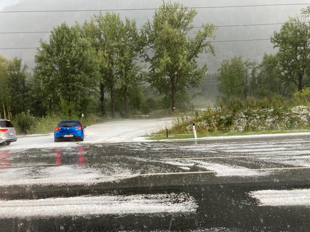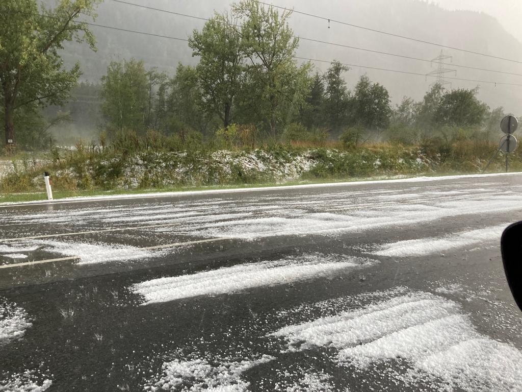 Herausfordende Situation für Autofahrer*innen und andere Verkehrsteilnehmer*innen Montagabend auf der Felbertauernstraße, Höhe Unterpeischlach: Hier sorgten Hagel und Regen auf der B108 vorrübergehend für eine Rutschpartie, manche Fahrzeuge blieben laut Augenzeugen sogar kurzfristig hängen.