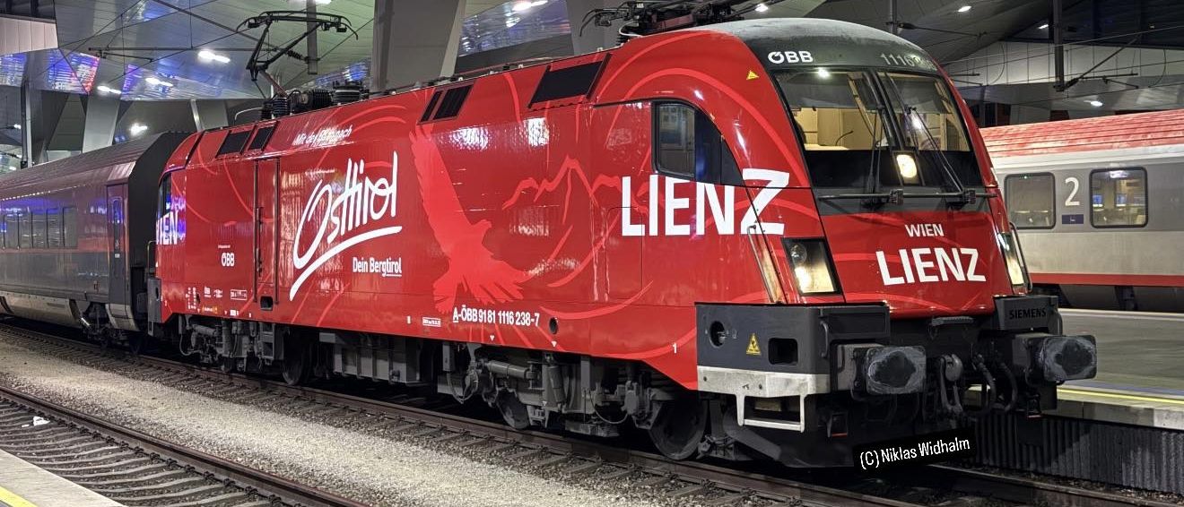 Niklas Widhalm fotografierte sie bereits – die brandneue Lok im Osttirol-Look. Der Fotograf erklärt gegenüber dem Osttiroler Boten: „Am 27. Dezember konnte ich die neu folierte Siemens 1116 238 am RJX 660 nach Bregenz am Wiener Hauptbahnhof fotografieren. Das Design ist meiner Meinung nach gelungen.“ Für TVB-Obmann Franz Theurl ist die Tunneleröffnung ein Meilenstein: „Aufgrund seiner topografischen Lage ist Osttirol als eigenständige Region zu betrachten – nicht nur im Tourismus, sondern auch als Wirtschaftsraum.“