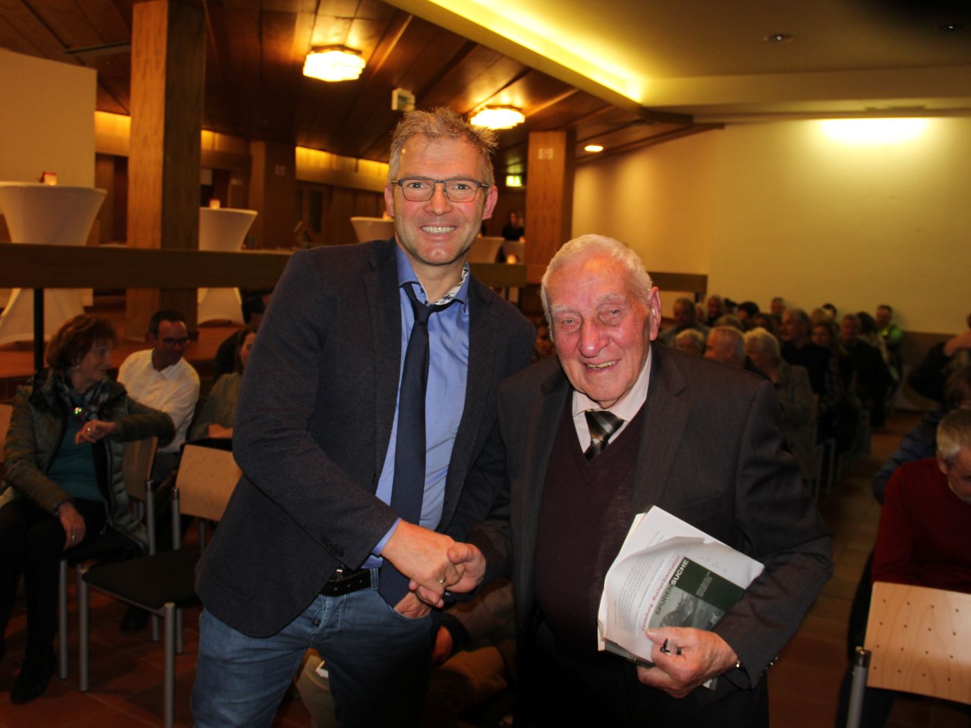 Bürgermeister Josef Außerlechner und Autor Ludwig Wiedemayr. Foto: Leonhard Draschl