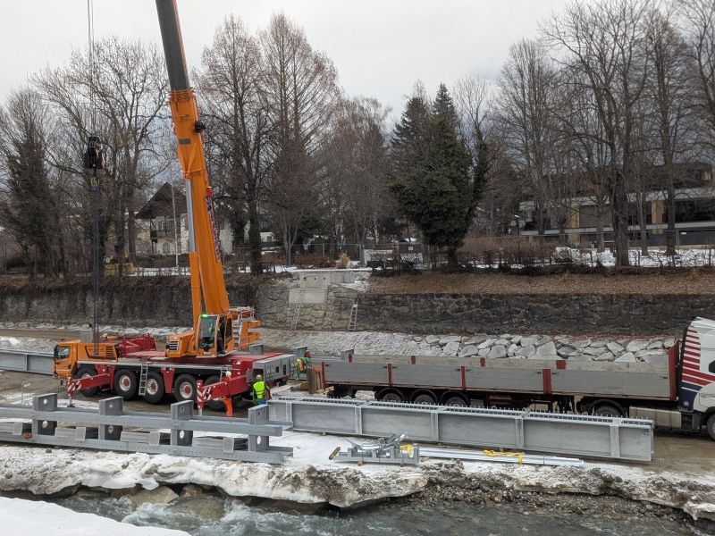 Am Montag wurden Teile für den neuen Iselsteg angeliefert. Ein 300-Tonnen-Mobilkran wird den Steg voraussichtlich am 27. Jänner einheben.