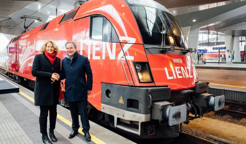 Botschafterin auf Schiene gebracht:  Mit der Taufe einer Taurus Lokomotive wird Osttirol künftig im Bahnverkehr präsent sein.