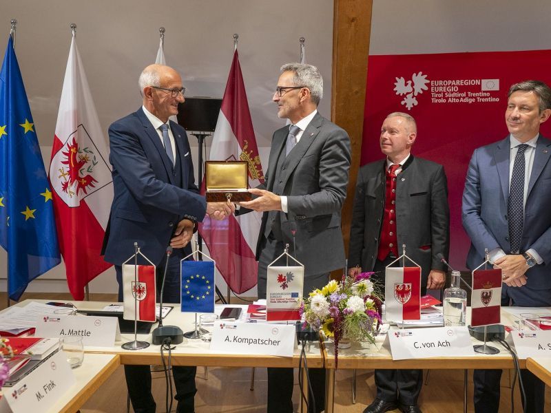 Die Euregio Tirol-Südtirol-Trentino hat am Donnerstag in Salurn den Vorsitz gewechselt. Mit 1. Oktober übernimmt Tirol offiziell die Präsidentschaft für zwei Jahre.