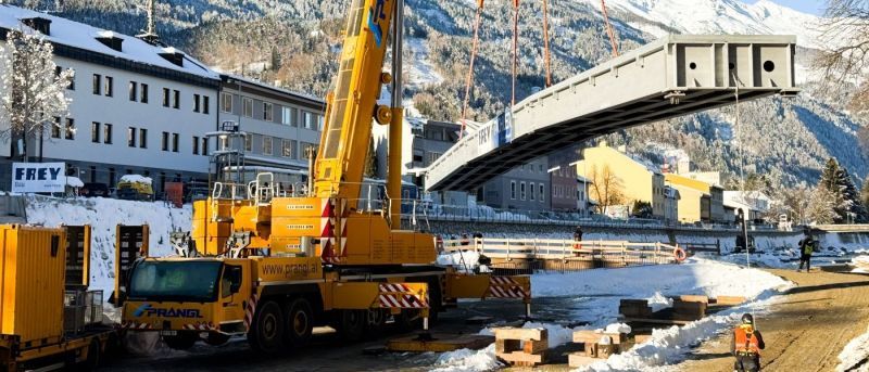 Ein wichtiges Element des neuen Iselstegs überspannt nun die Isel, weitere Arbeiten sind aber noch notwendig.